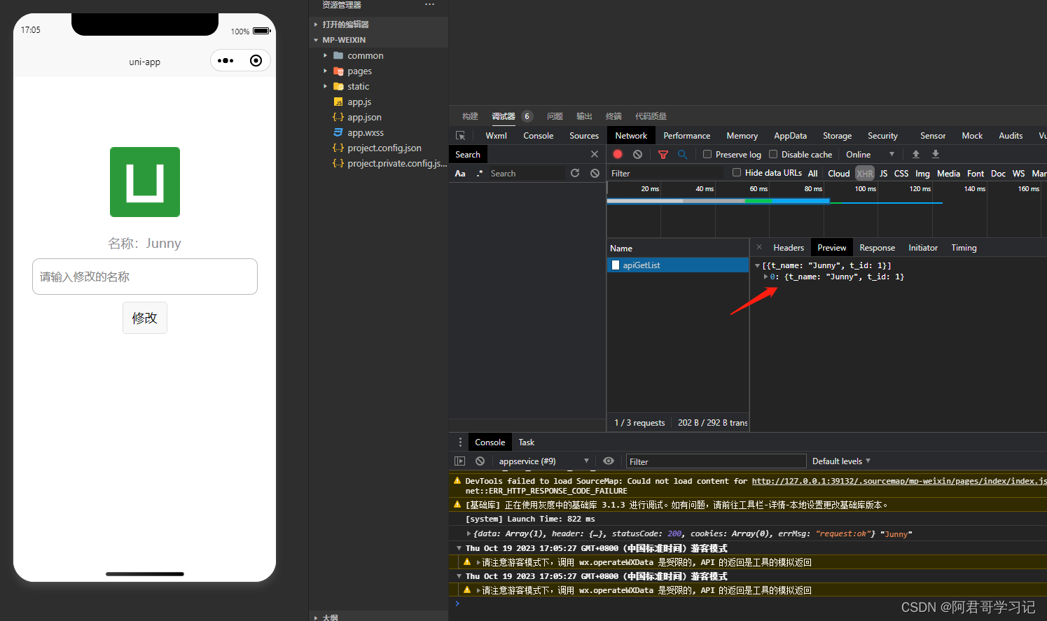 微信小程序-JAVA Springboot项目-小程序搭建-项目搭建01-CSDN博客https://blog.csdn.net/qq_53316719/article/details/133885119?spm=1001.2014.3001.5501** 接收后端数据代码:**