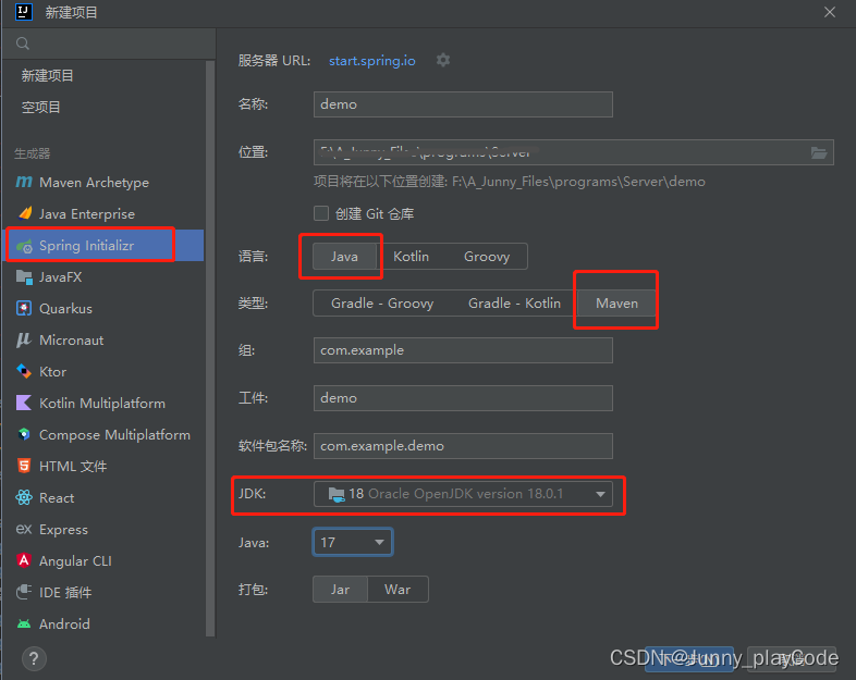 Java Archive Downloads - Java SE 18 (oracle.com)https://www.oracle.com/java/technologies/javase/jdk18-archive-downloads.htmlhttps://www.oracle.com/java/technologies/javase/jdk18-archive-downloads.htmlJDK 安装与环境变量配置(Win10详细版)_jdk环境变量配置-CSDN博客https://blog.csdn.net/qq_38436214/article/details/105071088https://blog.csdn.net/qq_38436214/article/details/1050710883、创建Springboot项目