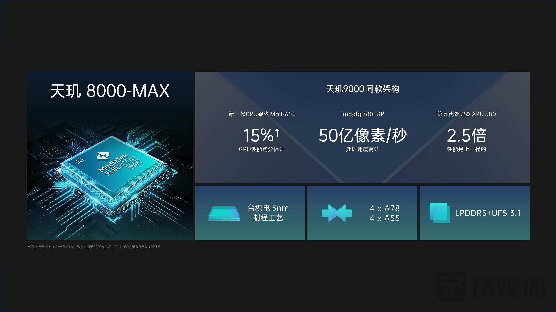OPPO K10系列对芯片、续航和屏幕等配置进行升级,该系列首次采用双旗舰芯片,OPPO K10 全球首发天玑8000-MAX 5G移动平台,而OPPO K10 Pro则搭载旗舰级芯片骁龙888 5G移动平台。两款芯片均配备UFS 3.1闪存+LPDDR5内存。