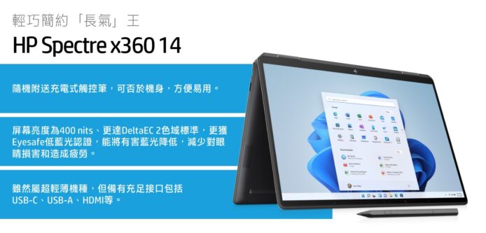輕巧簡約「長氣」王 — HP Spectre x360 14