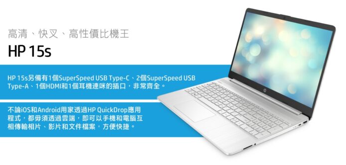 HP 15s有兩款配置選擇,作文書處理、網上瀏覽可選擇採用第12代Intel Core i3-1215處理器的入門型號;而想有更高的性價比規格,可選擇採用第12代Intel Core i5-1240P處理器的型號,第12代Intel處理器的速度和效能比上一代顯著提升。