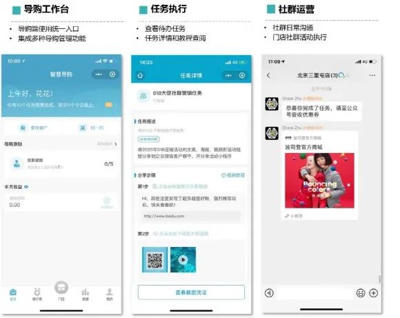 上述中提到的要用新产品和工具来取代人海战术,还只是数智化的一部分体现。与此同时,企业可以将日常的运营和内部的管理都进行“改造”,比如策方SCRM的“智能线索”,通过系统及工具,将线索进行即时分配、监控员工添加数据,以及对私域用户行为和消费轨迹进行记录等等。波司登此前也运用过群脉的“任务平台”,将总部和超万名导购链接起来进行高效管理,也能够做可视化的目标规划,提升一线员工的工作规范性。