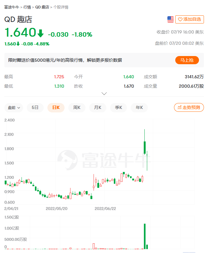也有人认为,罗老板是要对标新东方,模仿东方甄选,用直播热度拉抬股价,以实现在美股获利退出。毕竟,在股价上,趣店集团已经跌至1.08美元,最低时只有0.7美元,市值蒸发了98%,沦为垃圾股中的垃圾。