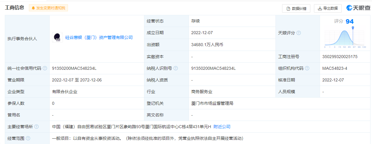 而通策医疗减少收购的股份,由厦门硅谷韶华一号投资合伙企业(有限合伙)(以下简称“硅谷韶华一号”)购入,硅谷韶华一号成立于2022年12月7日。据报道,硅谷韶华一号有国资背景,控股股东为杭州工商信托股份有限公司,其控股股东为杭州市金融投资集团有限公司,持股比例57.992%;而杭州市金融投资集团有限公司由杭州市人民政府持股90%。