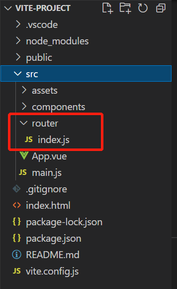 2、在 src 下新建 router 文件夹,且新建一个文件 index.js
