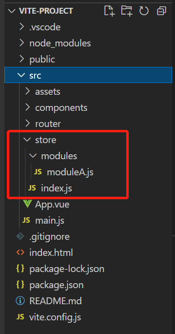 2、在 src 下新建 store 文件夹,且新建一个文件 index.js