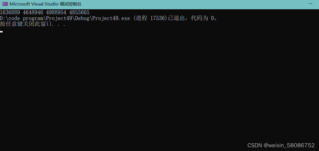 这是一个测试函数,把该函数与上述函数放在一块我们ctrl+F5观察结果如下: