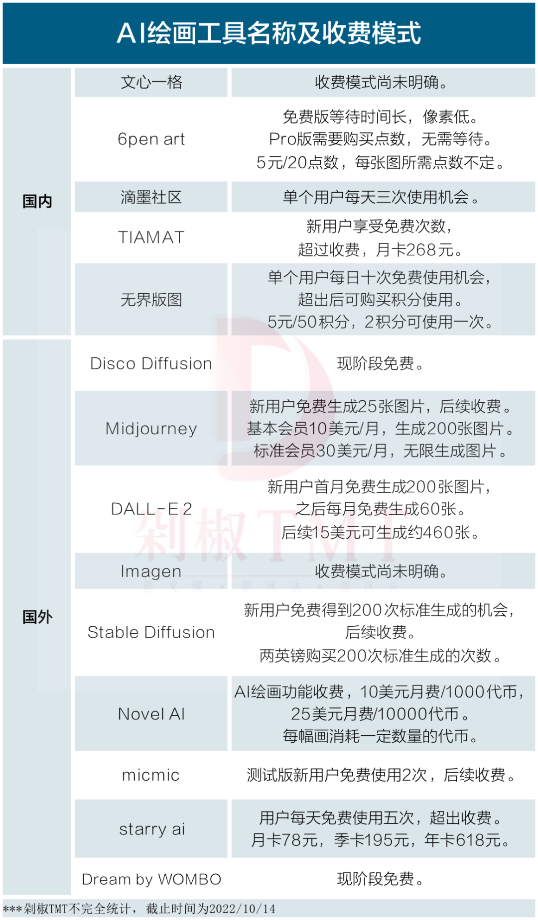AI绘画的火爆离不开工具的完善,也就一年的时间,海内外涌现出了一批AI绘画工具。今年八月,百度推出了AI绘画平台文心一格。AI绘画的前景也被资本看好,生成式AI平台“TIAMAT”在10月12日宣布完成由知名风投机构DCM投资的数百万美元天使轮融资。