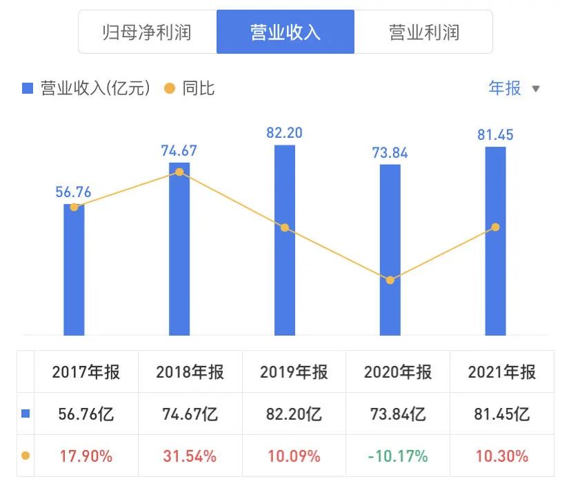 这也导致东北制药多年来业绩不振,营业收入除2018年增长31.5%外,其余各年增长均不算亮眼,**2018年至2021年营收复合增长率仅2.9%**。