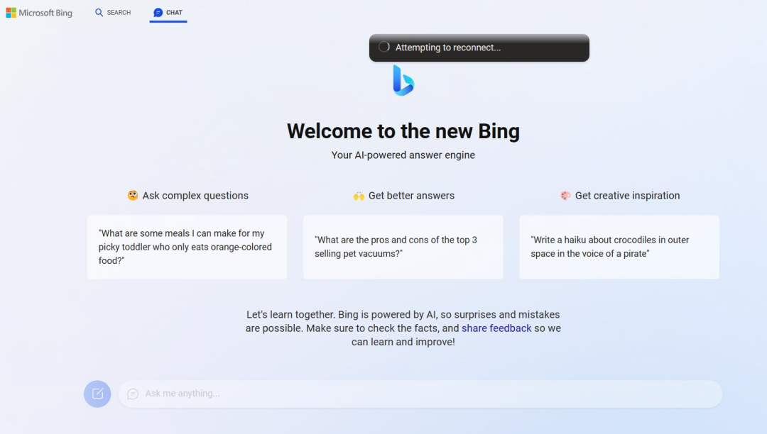 这些内容现在仍然没有实际可用的产品原型曝光。另外一边,微软已经宣告将在必应搜索整合 ChatGPT 本尊,甚至功能都已经做好了,甚至都对外放出来了——虽然只有短短的 5 分钟,但已经足够至少 3 个人在 Twitter 上放出截图。