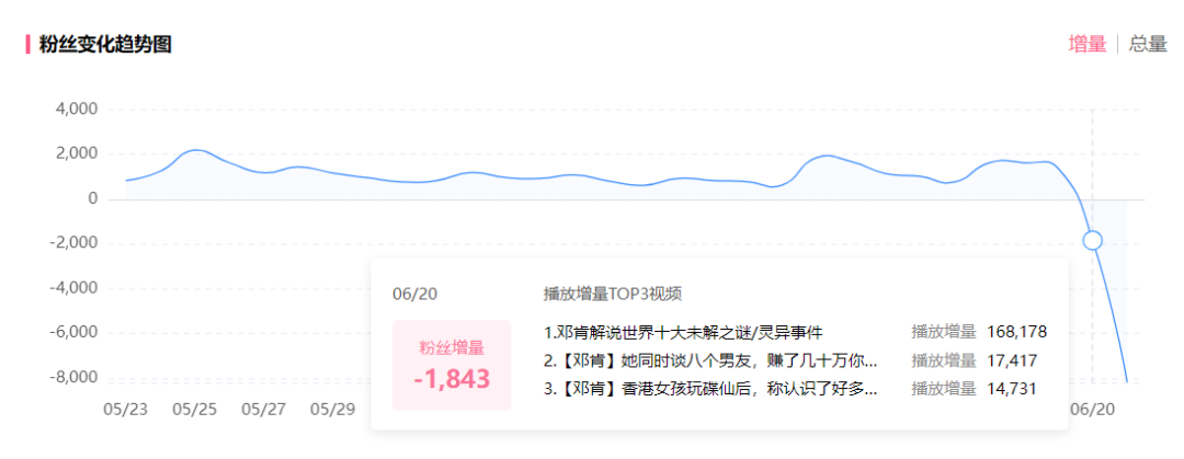 在“勾手老大爷邓肯”的收费作品预告视频的评论区里,虽然有部分粉丝表示支持,但是也有更多的粉丝不认可这种内容的收费视频。从相关平台查询到的数据显示,在宣布上传付费视频后的两天时间里,“勾手老大爷邓肯”的粉丝数已经减少超过一万,而且可以预见的未来一段时间里粉丝数可能还会继续下跌。
