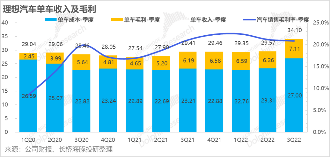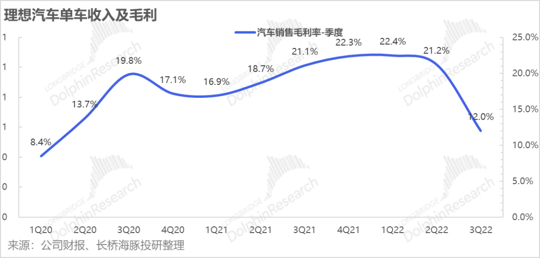 显然,这样的滑坡速度是公司远远没有预料到的,导致原本理想One上的备货和供应商提前签的合约金额都太大了,最终三季度跟理想One相关的存货减值和合同损失高达8亿多。如果踢掉这8亿的损失,实际汽车销售业务毛利率是20.8%,与市场预期完全一致。