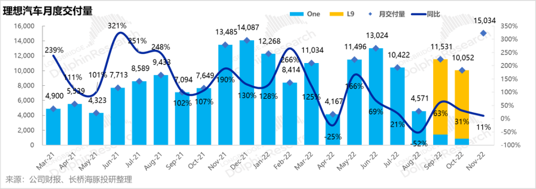 3. 新车短期能打,但明年还是未知数根据海豚君看到的调研信息,L8的新订单10月应该已经超过了一万,不过会侵蚀到一部分L9的订单,对应的对手应该是问界M7、腾势D9以及领氪09;而到11月底L9应该有2.5万未交付订单,而L8大约是再两万,订单储备还比较充足。