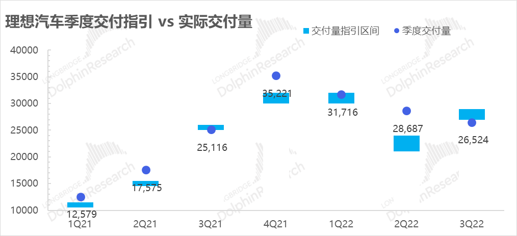 而公司三季度本身的交付是相对比较拉胯的:三季度理想卖了2.65万辆车,甚至连公司原本的指引区间2.7-2.9万都没有达到,理想One萎缩太快是核心原因。