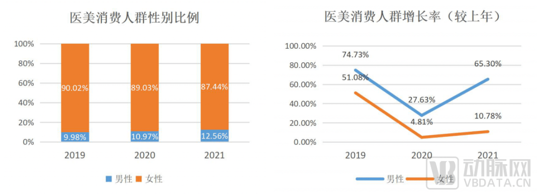 数据可一窥火爆程度。据新氧数据颜究院显示,2021年,约有230万男性进行了医美消费。不仅如此,女性消费者同比增长10.78%, 男性医美消费者同比增长超过65%,增幅达到了女性消费者的6倍。
