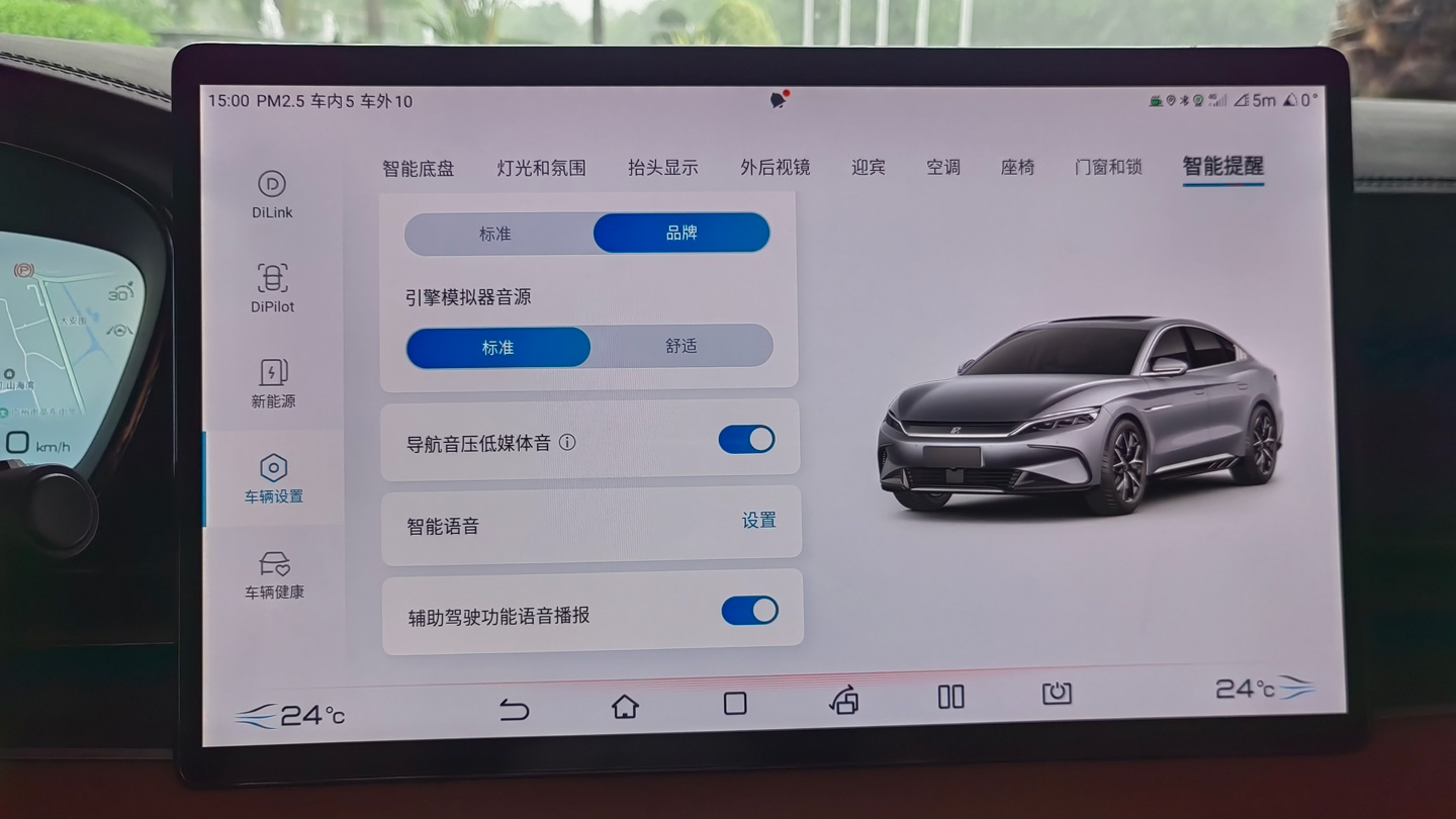 汉家族还带来了融合中国风的NVH主动声,借鉴汉朝流行乐器古筝的音色设计上下电声与行人警示音,声音流畅优雅,兼顾品质感,做到整体的和谐统一,凸显了智能座舱的高级格调,让乘客在听觉上别有一番味道,也提升了比亚迪车型的辨识度。