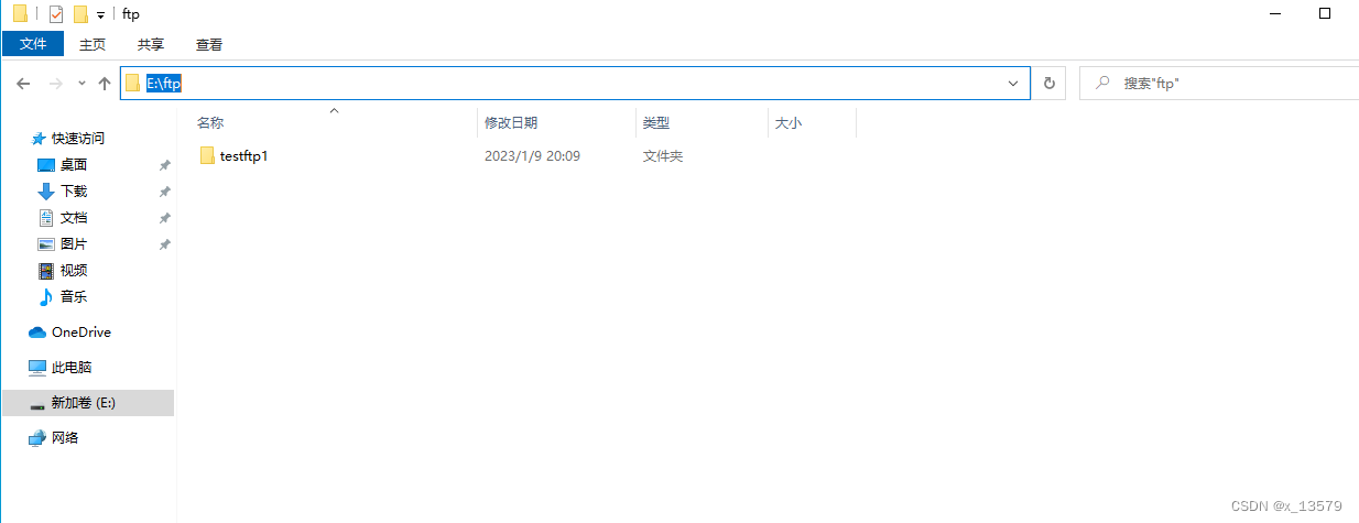 成功访问FTP站点对应的共享文件夹ftp后,可以新建一个测试文件夹testftp1