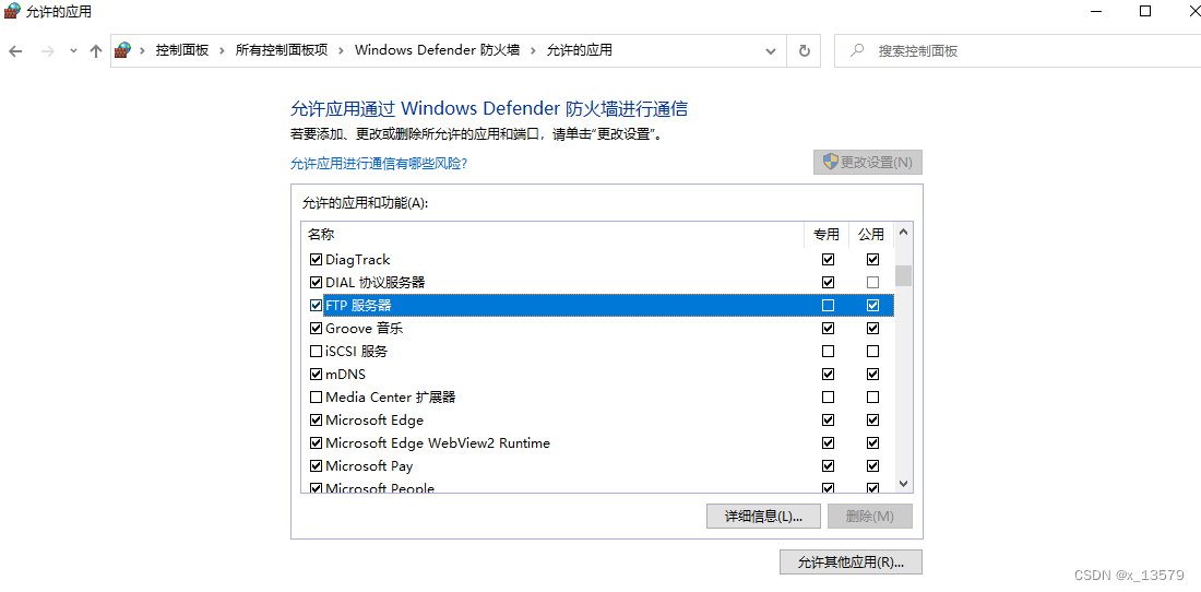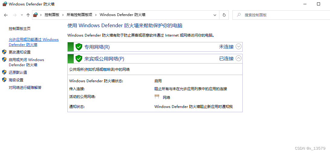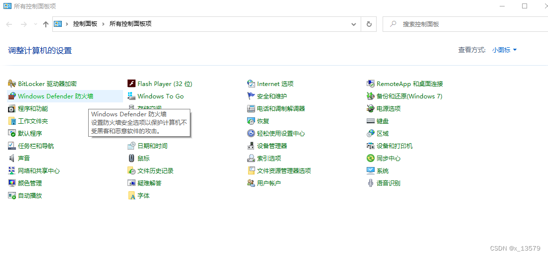 找到防火墙,点击“允许应用或功能通过Windows Defender防火墙”