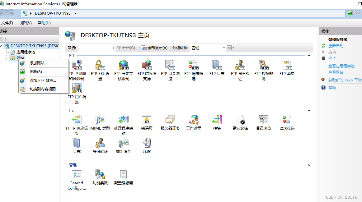 启动FTP服务,否则之后创建的FTP服务器将无法启动