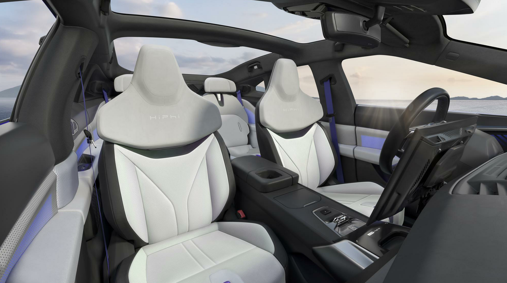 双调性数字座舱的全新概念在HiPhi Z上首次被提出。在前排的星舰驾驶区域内,赛车桶椅配合一体式头枕,让驾驶者在城市中也能体验到GT的驾控快感。后排是可调节靠背角度的环绕包裹式座舱,提供了良好的包裹与支撑体验。高合将赛博朋克的机械操控感与沉浸式的舒适惬意融合,对比与冲突在HiPhi Z上达到空前平衡。