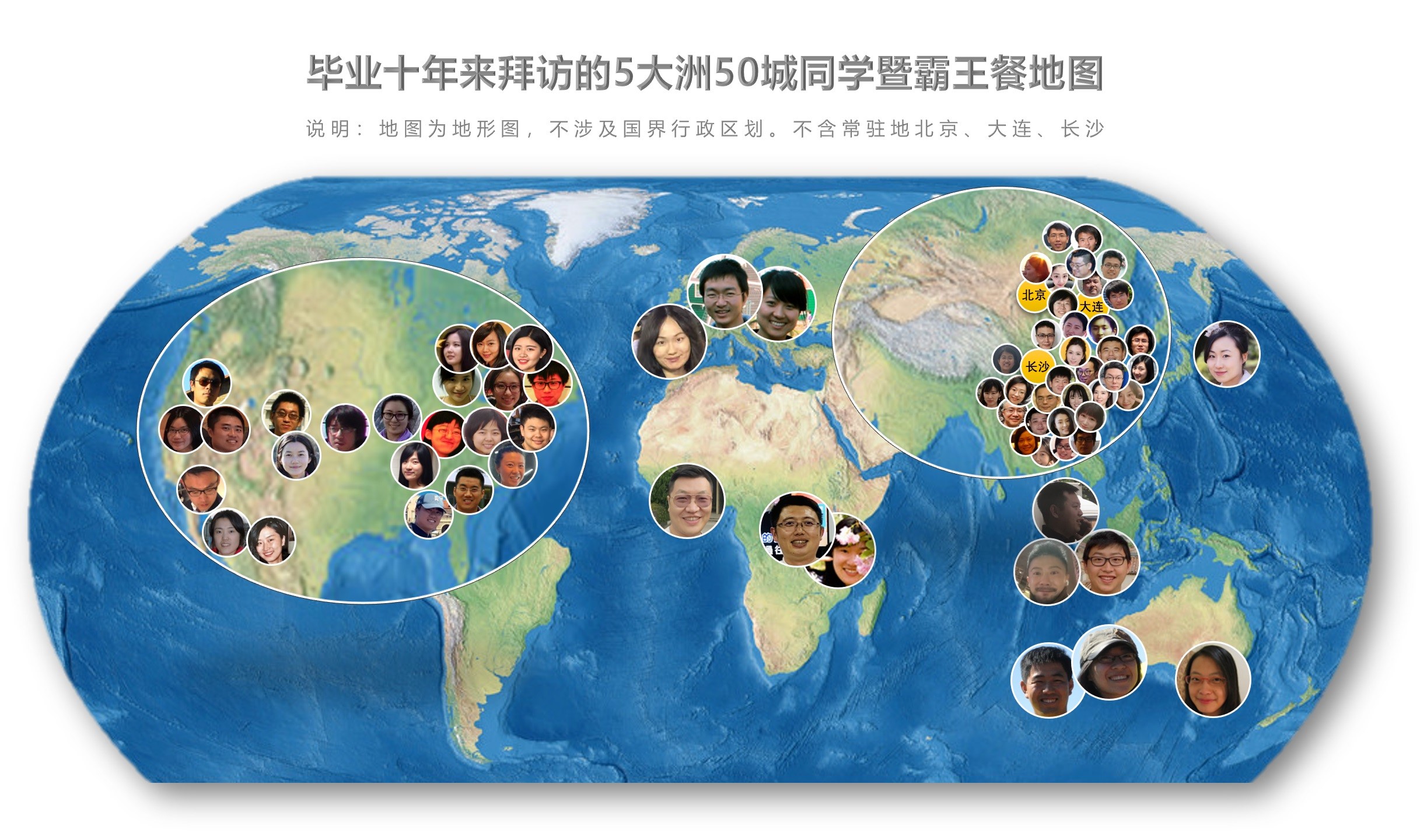 毕业十年来我吃遍了5大洲50城同学的“霸王餐”,其中一半是大连理工大学的同学,一半来自雅礼中学,那套明信片也拜访之处人手赠送一套。