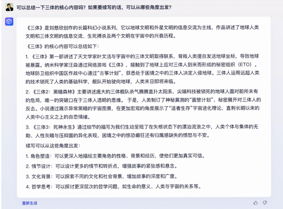 速途元宇宙研究院也尝试了李彦宏在现场DEMO中演示的问题,而文心一言的回答与演示的回答并不尽相同,可见文心一言的内容是利用AI大模型真真正正“生成”出来的。
