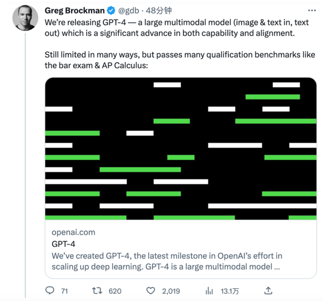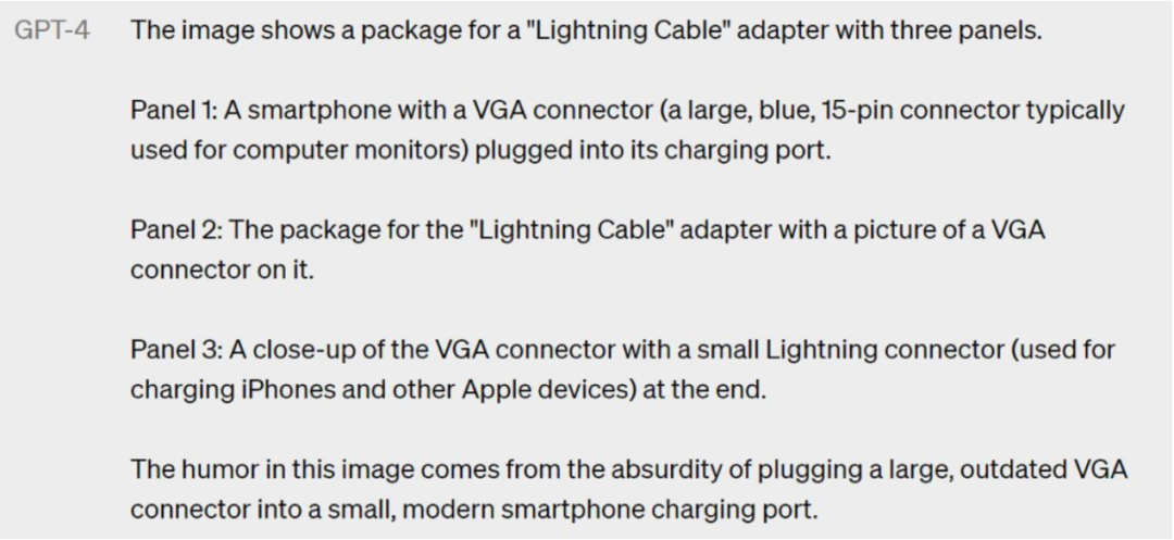 在新的GPT-4上,产品不仅拥有了更高的回答准确率,同时能够生成歌词、创意文本并实现风格变化,但最大的升级显然是增加了强大的“识图”能力,允许用户指定任何视觉或语言任务,例如分析一张图片的“笑点”与“梗”。