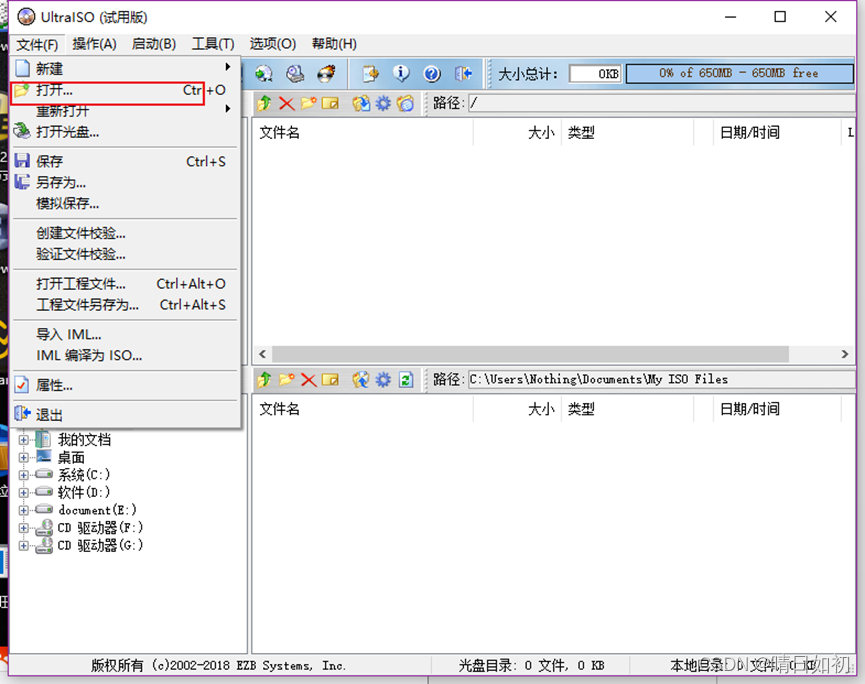 点击工具栏中的第二个打开镜像文件工具,如图红色方框标志按钮,然后在打开的“打开ISO文件”对话框中找到我们下载好的Ubuntu镜像文件,之后点右下方的“打开”按钮