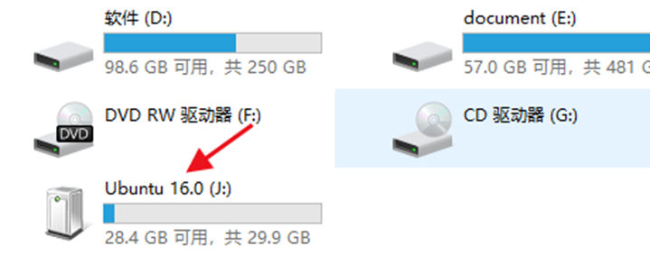 在制作完成后,打开我的电脑,可以看到U盘的磁盘图标和名称都已经改变,安全弹出U盘,就可以从U盘安装Ubuntu了。