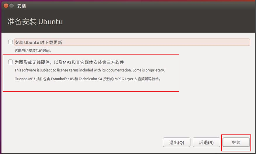 安装遇到 ‘更新和其他软件’,选择‘正常安装’,和 ‘图形界面’