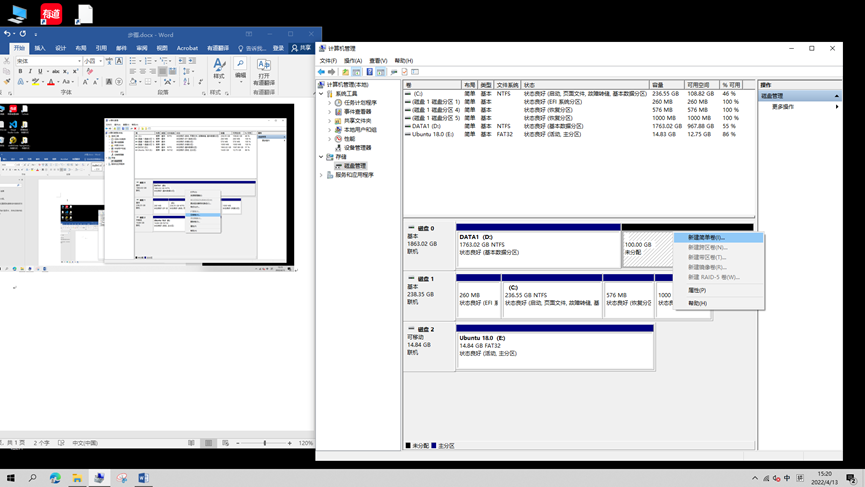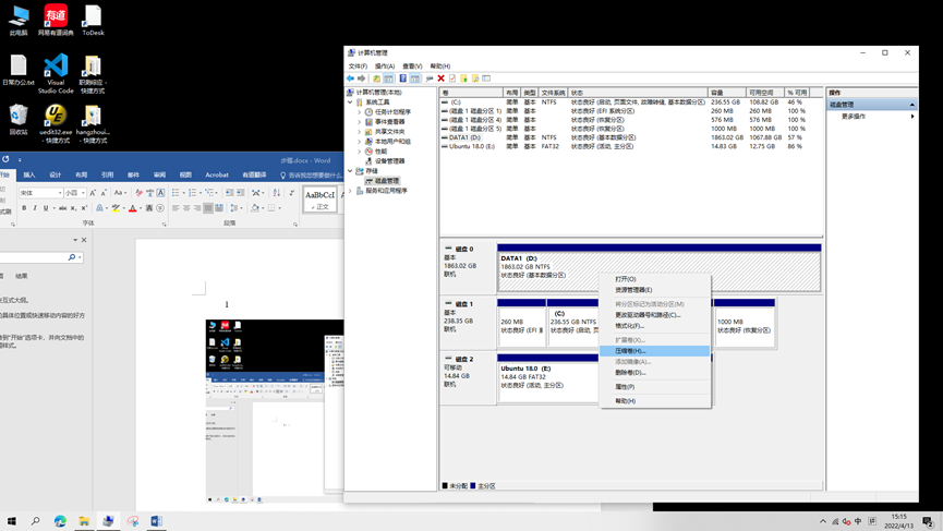可在Win10系统磁盘管理——压缩卷,释放500G的空间。在有空闲的盘压缩卷,如果分错可先删除卷再在原来的盘上扩展卷。