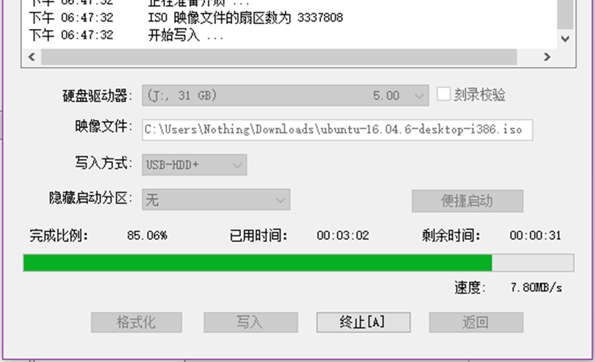 设置完成之后,我们点击下方的“写入”,写入的过程需要一定的时间,耐心等待一会之后,即可完成。