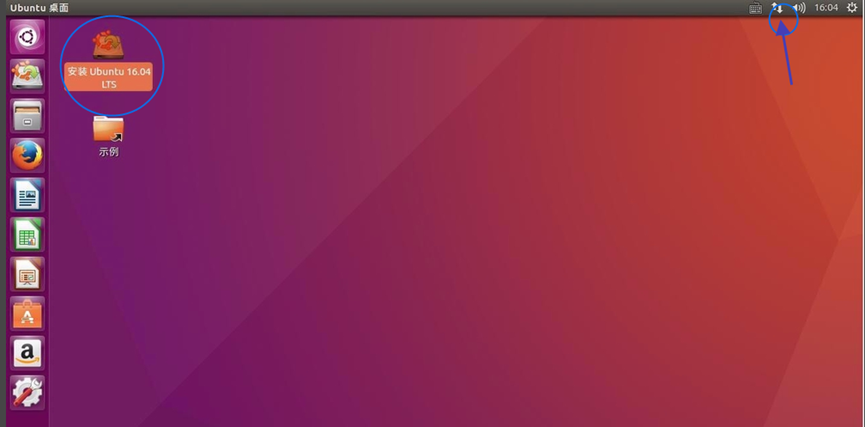 在桌面有"安装ubuntu 16.04 LES"双击打开,选择“中文”,点击“继续”