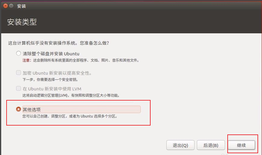 完成BIOS设置后就可以插入U盘重启电脑,就可以使用U盘进行Ubuntu操作系统的安装了。