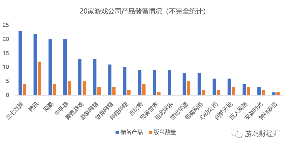游戏财经汇选取了20家A股及港股的游戏公司,统计了上述公司的版号储备情况。