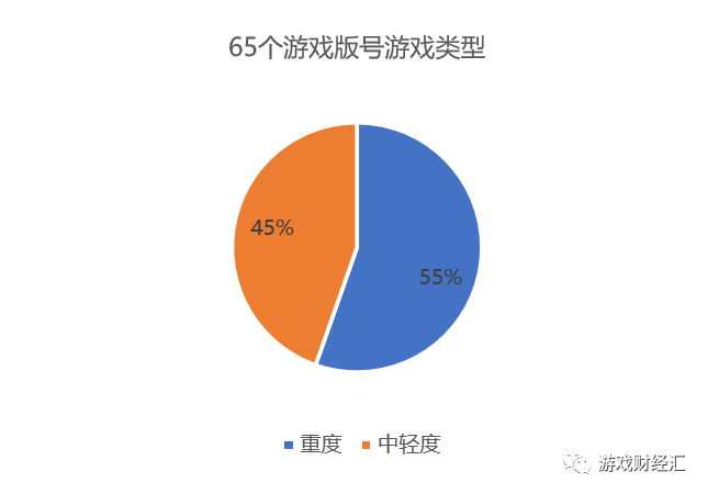 从版号类型来看,经游戏财经汇粗略统计,65个储备版号中,近半数为偏轻度的休闲产品。