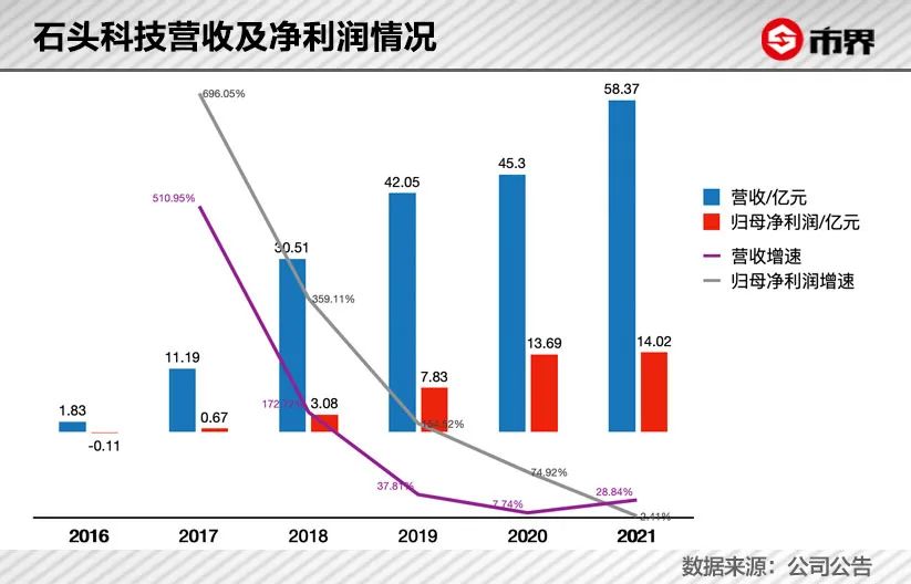 上市第一年的年报,石头科技的营收增速和归母净利润增速就创下2017年以来的新低,分别为7.74%、74.92%,且远不如前三年。