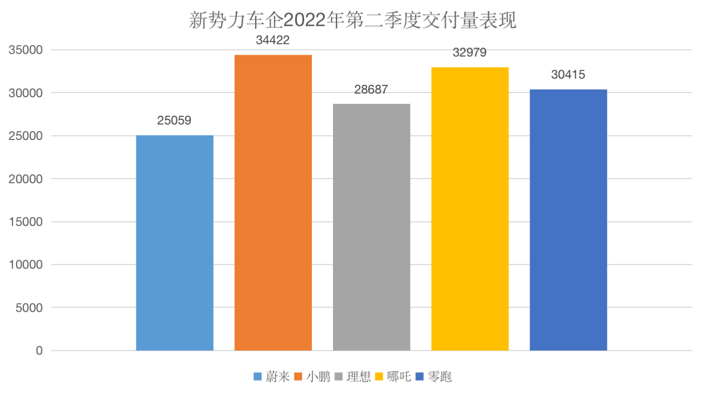 新势力车企第二季度交付表现