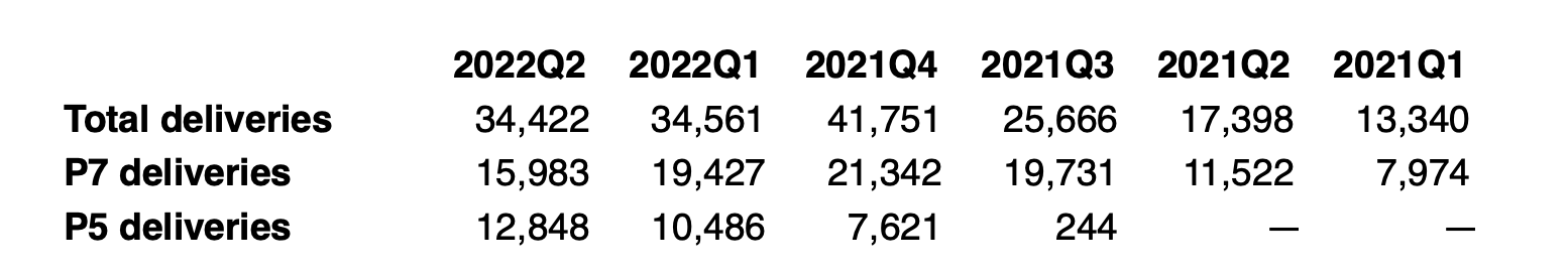 尽管受疫情影响严重,小鹏在第二季度仍交付了 34422 辆,其中小鹏 P7 交付了 15983 辆,小鹏 P5 交付了 12848 辆。
