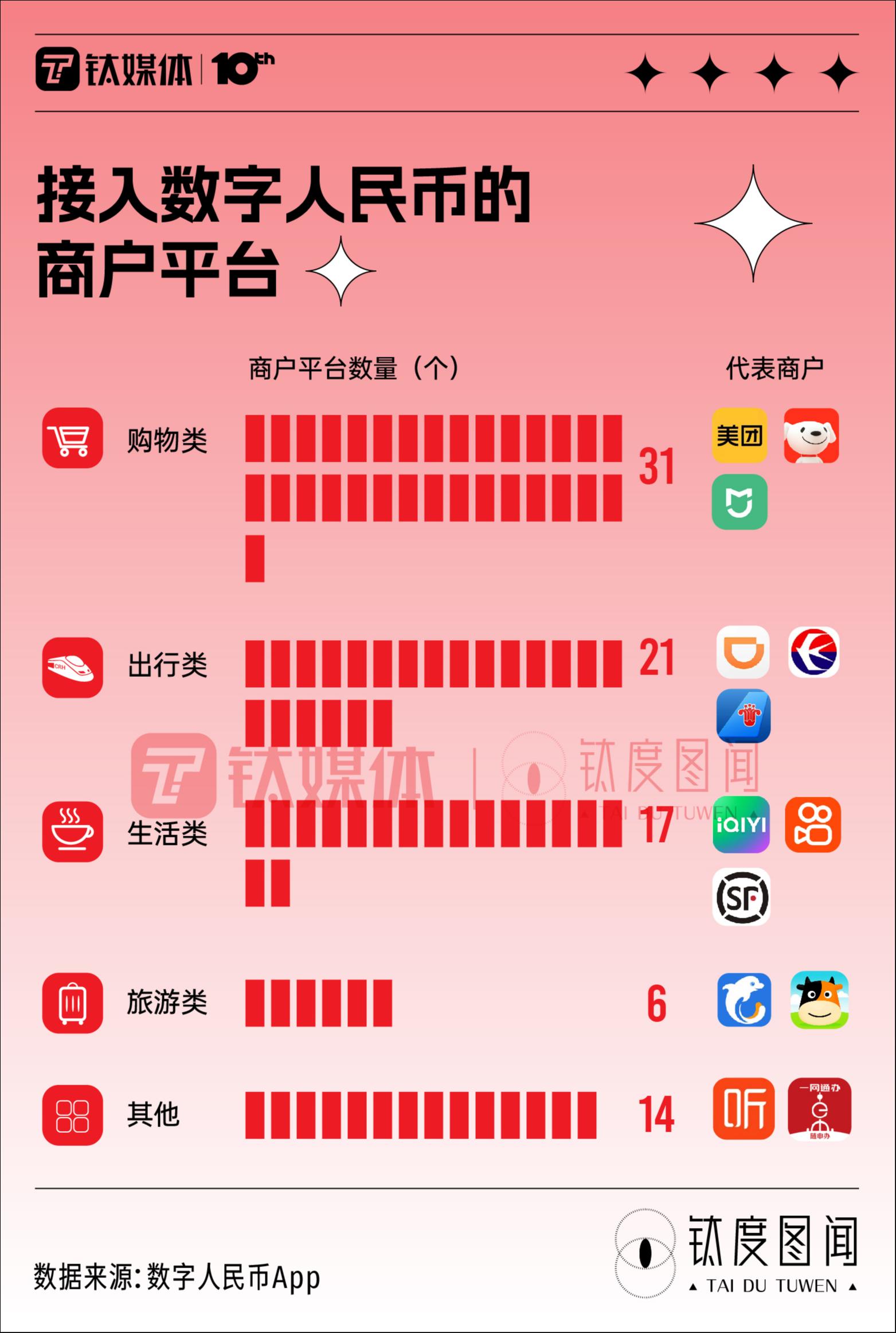数字人民币给我们的生活带来了什么?哪些场景可以使用数字人民币?钛媒体·钛度图闻最新一期,为你梳理数字人民币的试点数据,解码数字人民币的发展现状和应用场景。