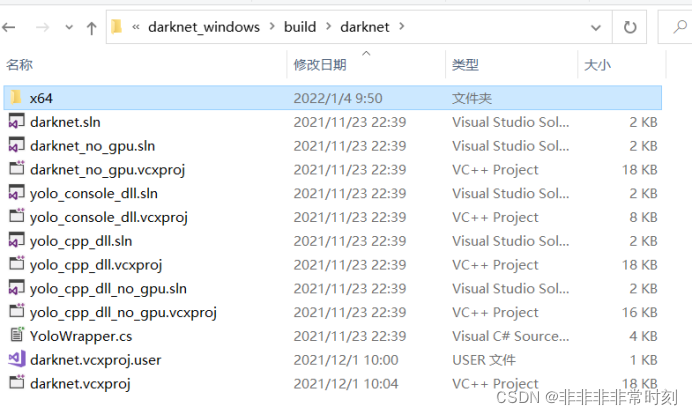 文件制作完后,将.cfg和.data文件放到cfg文件夹下,.names文件放到data文件夹下,.weights或conv.xx文件放到x64文件夹下即可