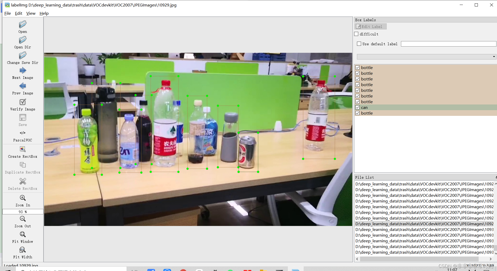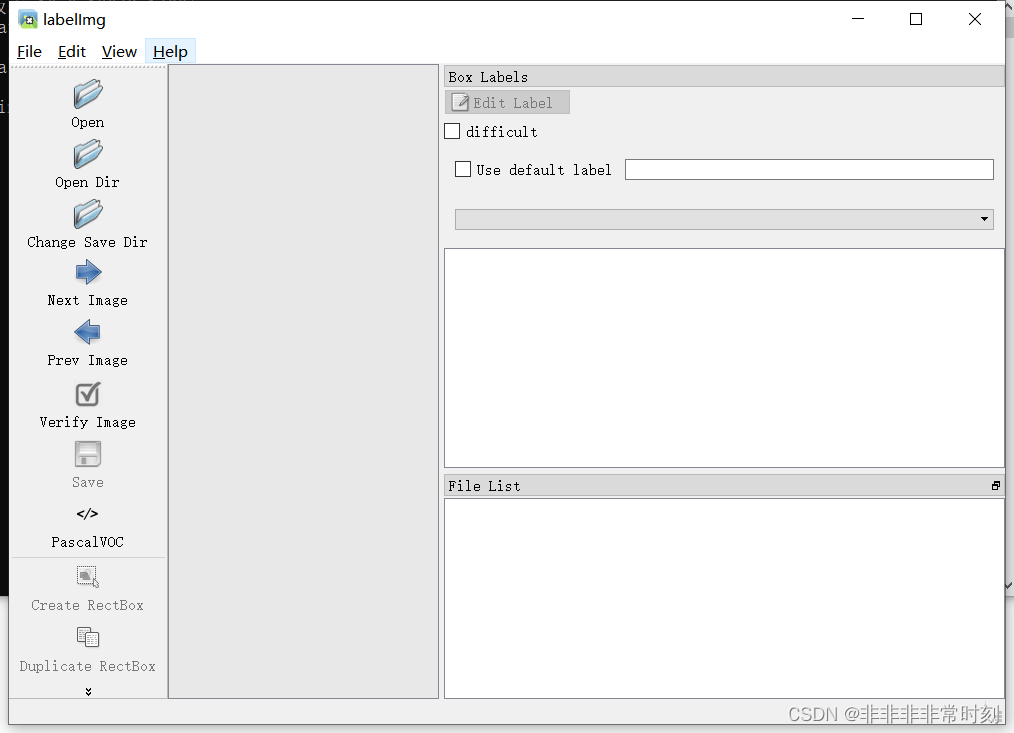 首先点击Open Dir选择要标注的原图文件夹(JPEGImages),然后点击Change Save Dir选择要存放xml标注数据的文件夹(Annotations)。(注意,xml和原图是通过文件名进行匹配的)