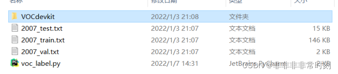 首先运行VOC2007目录下的test.py文件(不需要修改),将数据集分成,测试、验证、训练三类