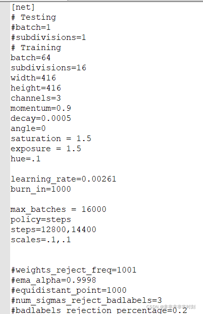 .cfg文件是算法配置文件(一般darknet的cfg文件夹下自带许多热门配置文件,也可以自己设计或者下载没有的配置文件),里面需要修改以下参数