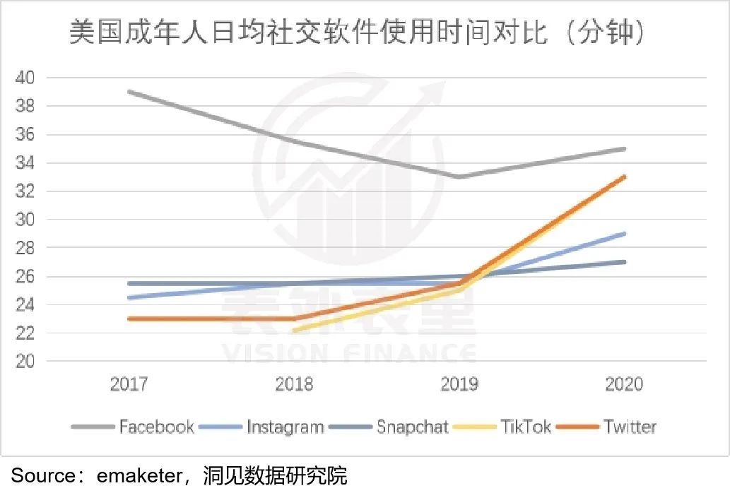 而与微博相比,同期的Twitter,用户时长却是拐头向上增长,和TikTok保持一致,粘性直逼Facebook。