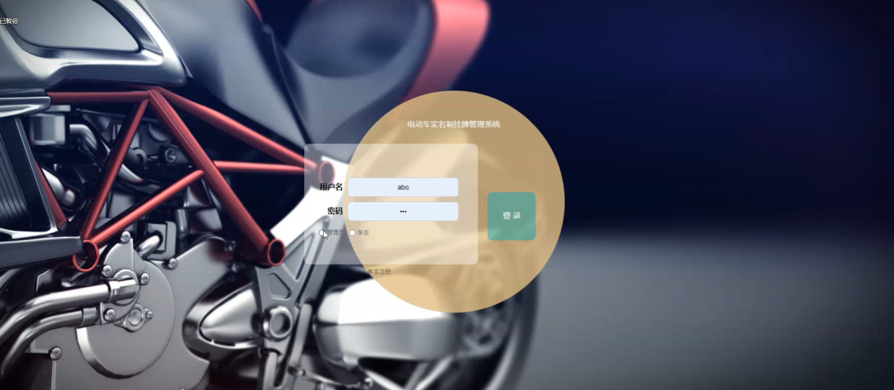 登录,管理员和车主通过输入用户名,密码,选择角色信息,点击登录进入系统操作进行操作,如图5-1所示。