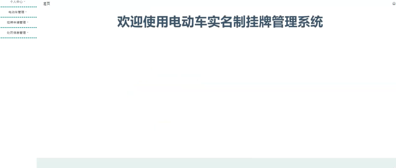 车主登陆系统后,可以查看主页、个人中心,电动车管理、挂牌申请管理、处罚信息管理等功能,还能对每个功能逐一进行相应操作,如图5-12所示。