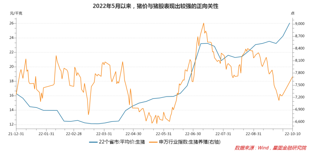 2022年5月以来,猪价与猪股价格表现出非常明显的正相关性,而在逻辑顺畅的周期中,猪股价格一般会提前反应猪价的变动,表现为更多的领先性而非相关性。