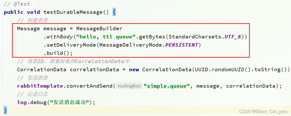 rabbitTemplate.convertAndSend("delay.direct", "delay", message, correlationData);