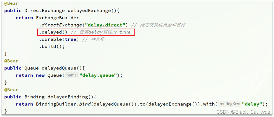 exchange = @Exchange(name = "delay.direct",delayed = "true"),